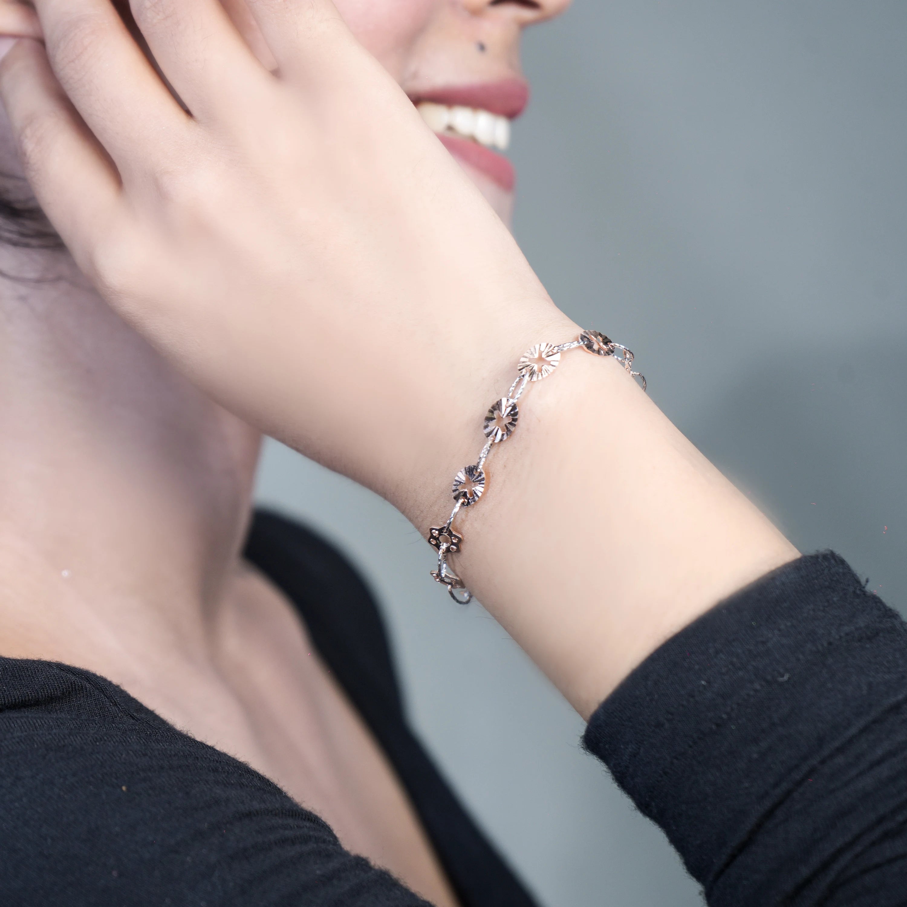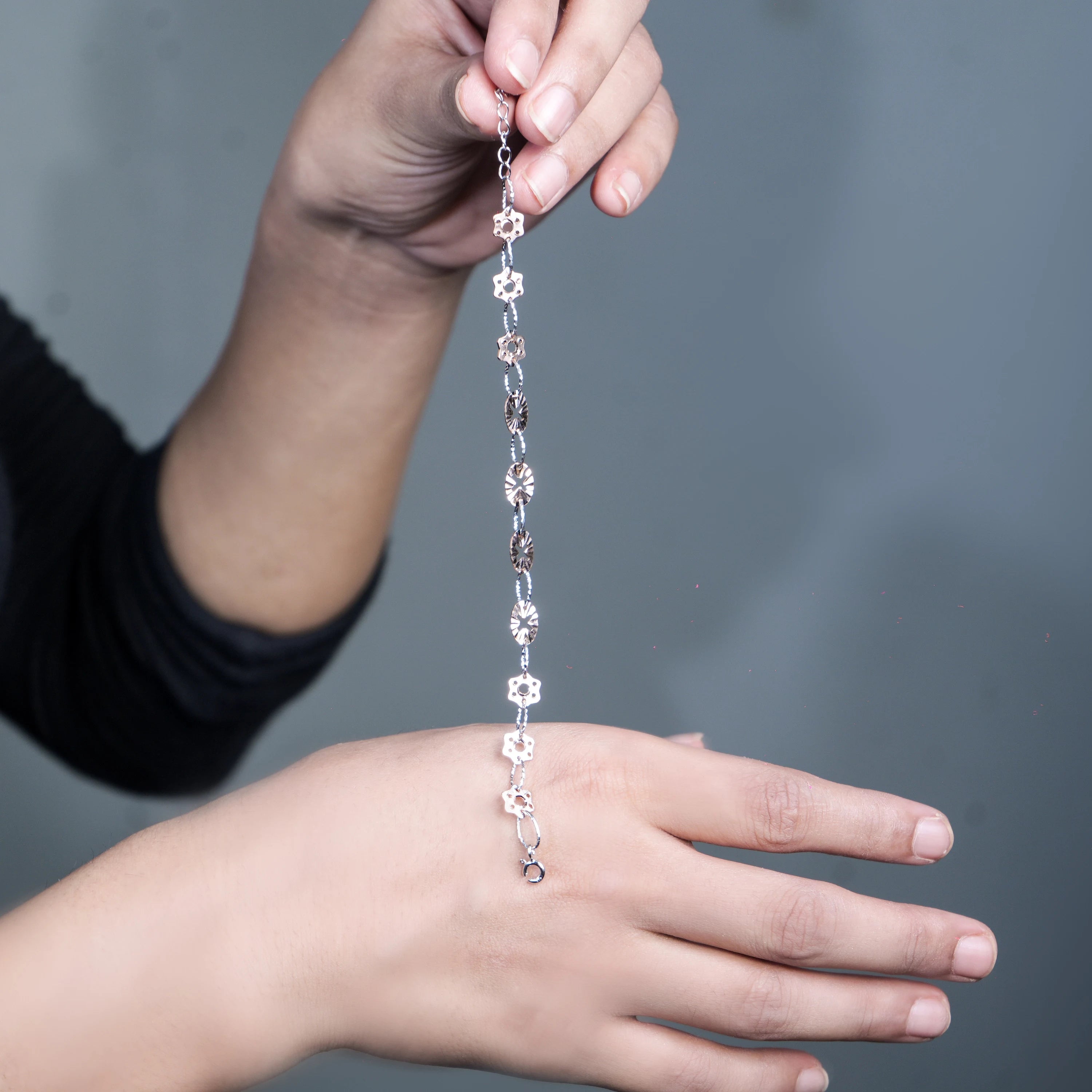 Adorn your wrist with this charming 925 sterling silver bracelet, elegantly plated in rose gold. It features delicate, interconnected motifs, creating a graceful and intricate chain design. This versatile piece offers a subtle touch of warmth and refined elegance, perfect for enhancing any everyday or special occasion look. The bracelet measures 6 inches with an additional 1-inch extension, ensuring a comfortable and adjustable fit.