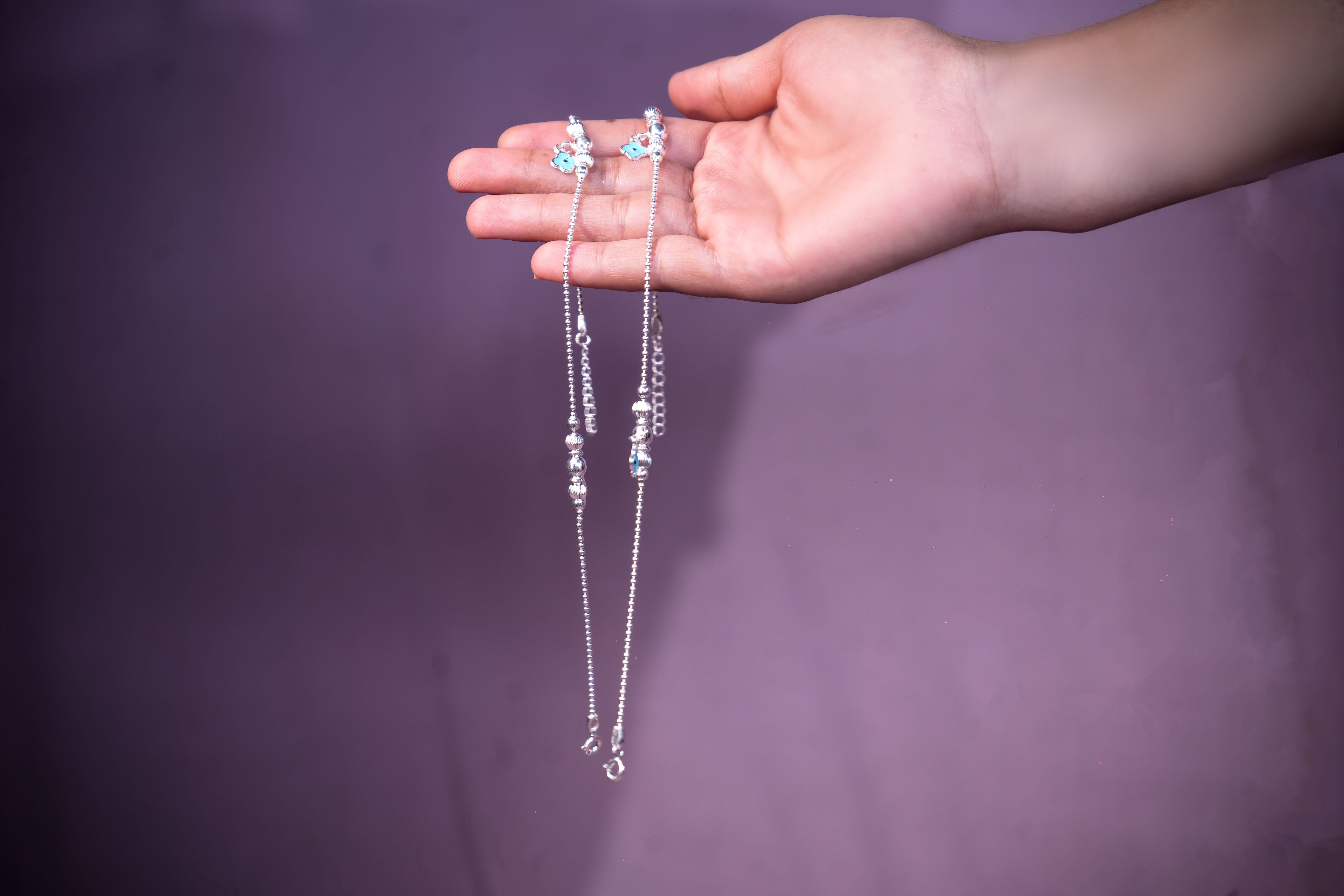SILVER FLORAL ANKLET