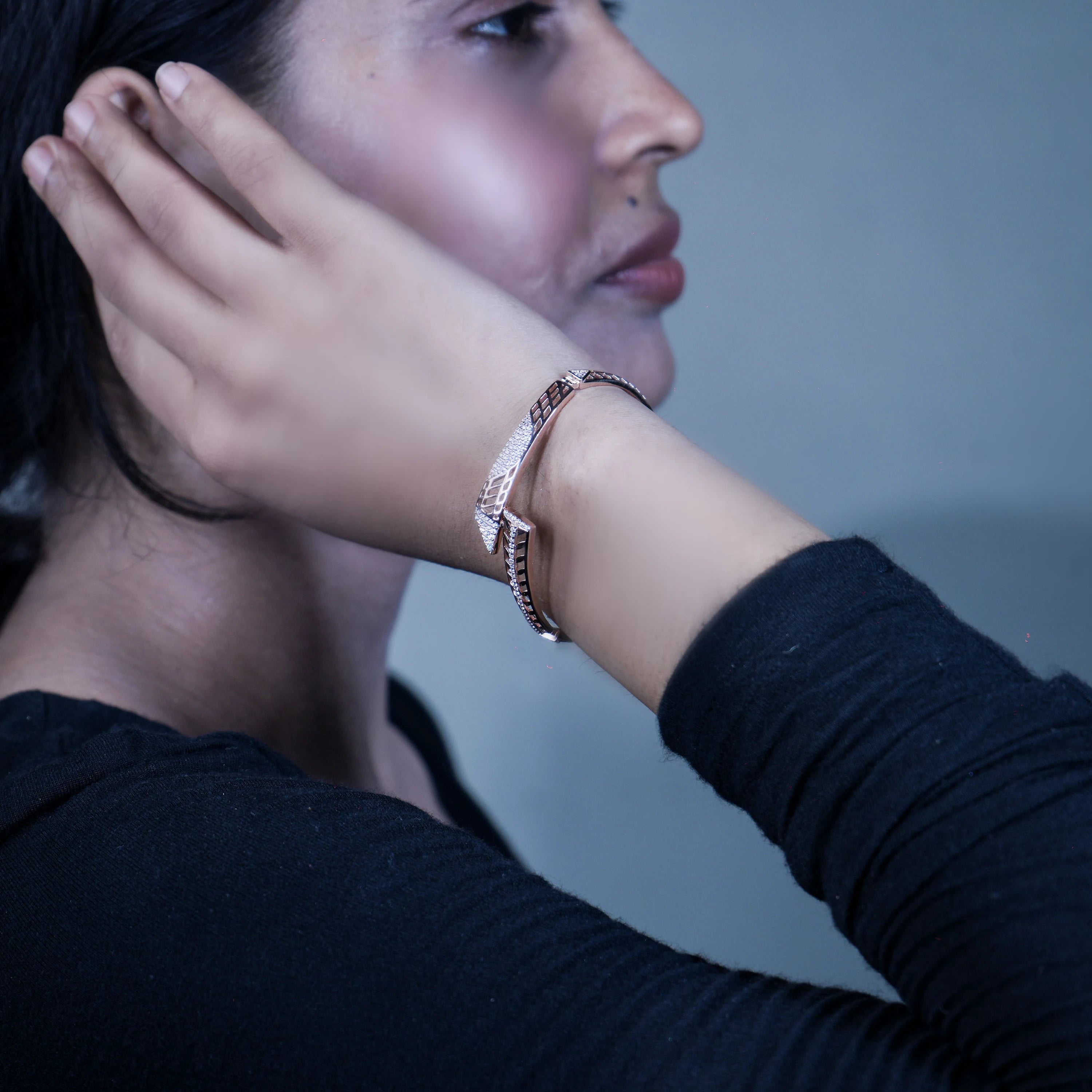 Adorn your wrist with this stunning 925 sterling silver rose gold bracelet , with a intertwining design. Adorned with brilliant cubic zirconia, it offers captivating sparkle and modern elegance. This versatile piece effortlessly elevates any look, from casual to formal. The bracelet measures 6 inches with an additional 1-inch extension, ensuring a comfortable and adjustable fit.